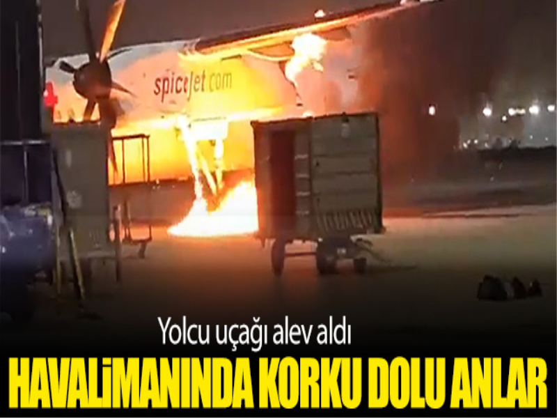 Hindistan'daki Delhi Havalimanı'nda bir uçağın motoru alev aldı.