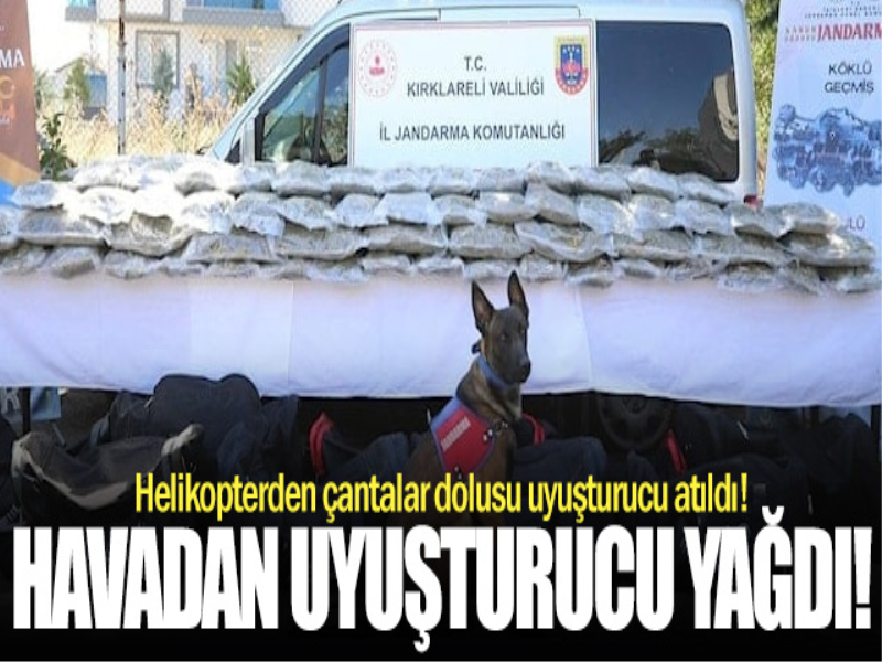 Kırklareli'de alçak uçuş yapan helikopterden uyuşturucu dolu çantalar atıldı.